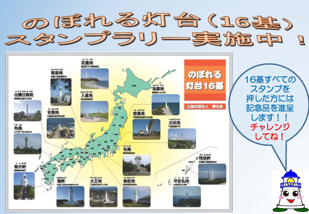 →灯台カード、初点記念額、参観灯台(登れる灯台)のスタンプラリー