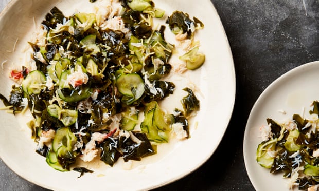 Ken Yamada’s Cornish crab, cucumber and wakame salad. Photograph: Louise Hagger for the Guardian. Food styling: Emily Kydd. Prop styling: Jennifer Kay