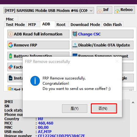※同時に「SamFw Tool」から「*#0*#をダイヤルしたか」みたいな英語表示が現れますが、YESをクリックしてください。