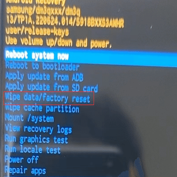 Samsungロゴが表示されたら電源ボタンのみを放し、リカバリモードが表示されるまで他のボタンを押し続けます。