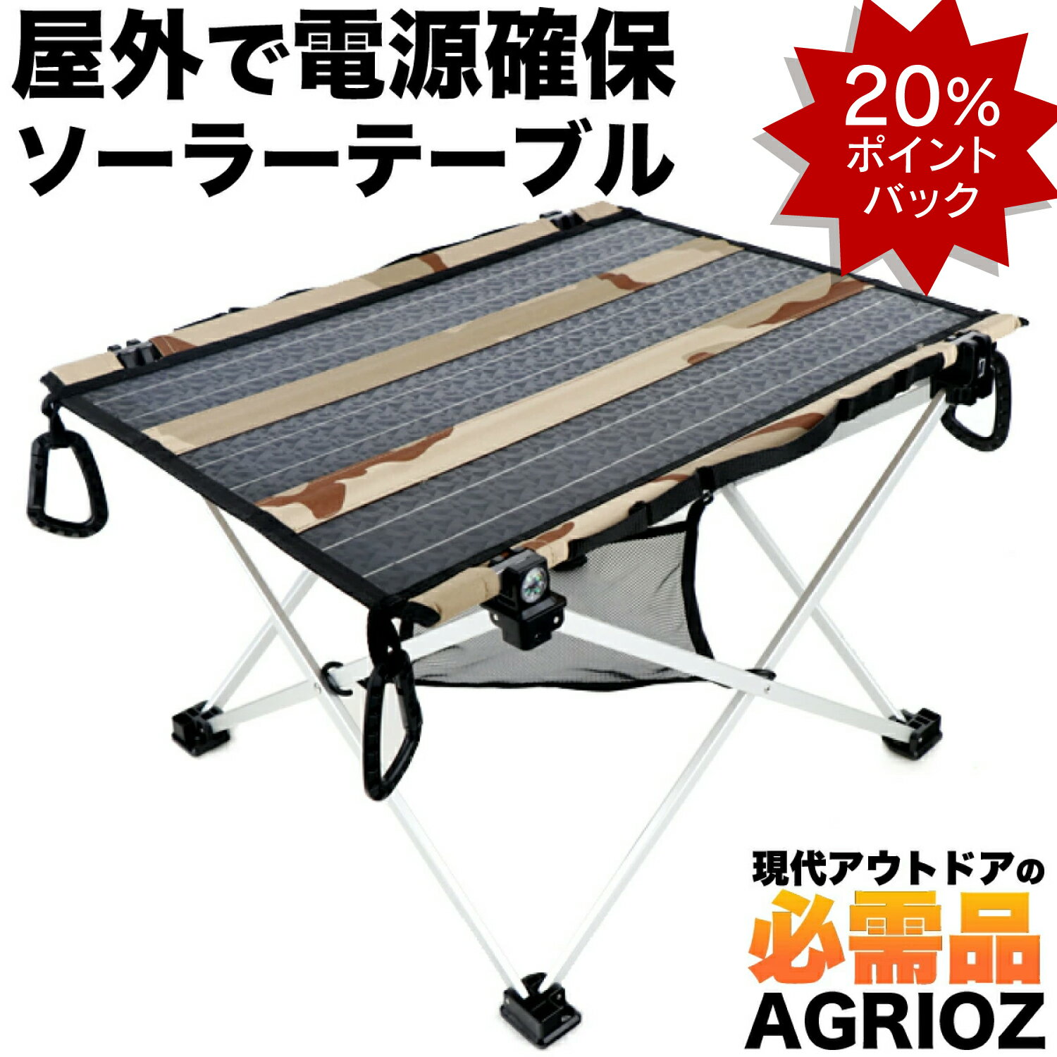\20%ポイントバック/ ソーラーテーブル ソーラパネル搭載 ソーラーアウトドアテーブル キャンプ【 AGRIOZ 】 多機能 軽量 頑丈 スマホ 充電 アウトドア 21W 2023楽天市場4,980円${EVENT_LABEL_01_TEXT}