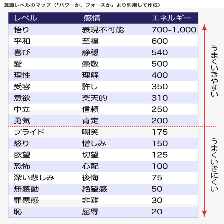 本で触れられているエネルギーレベルの図を抜粋しますので参考になさってください。