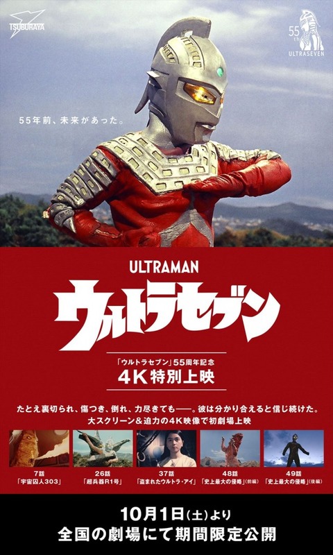 と思えば今年はウルトラセブンの55周年で選び抜かれたテレビ放送版が劇場公開されているようです、ウルトラセブンはウルトラマンよりも内容はシュールで大人向けなイメージです