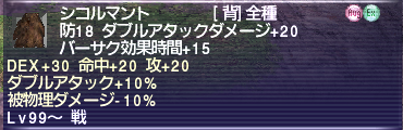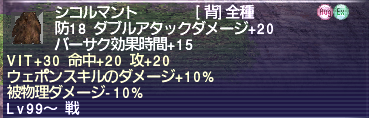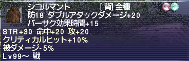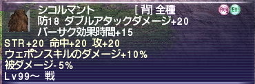 2)STR+20 命中攻撃+20 ウェポンスキルダメージ+10% 被ダメージ-5%