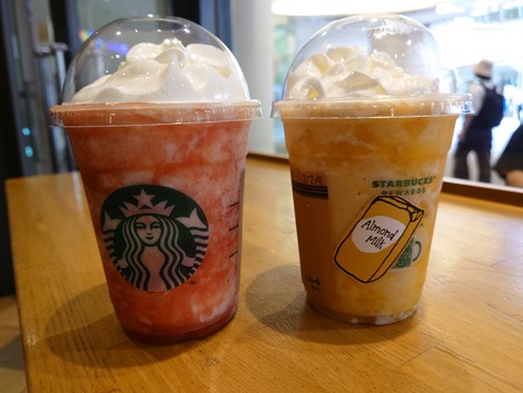 【期間限定】バナナブリュレフラペチーノ : 大阪ちょっとした広報部どこのスタバで飲んだか忘れてしまいましたが(・_・;)新作「バナナ ブリュレ フラペチーノ」をいただきました〜2024年5月29日(水)から2024年7月9日(火)まで販売らしいです(^_-)アーモンドミルク使用なので、シールが貼ってあります。隣はストロベリーフラペチーノskincare-choco-bird.blog.jp