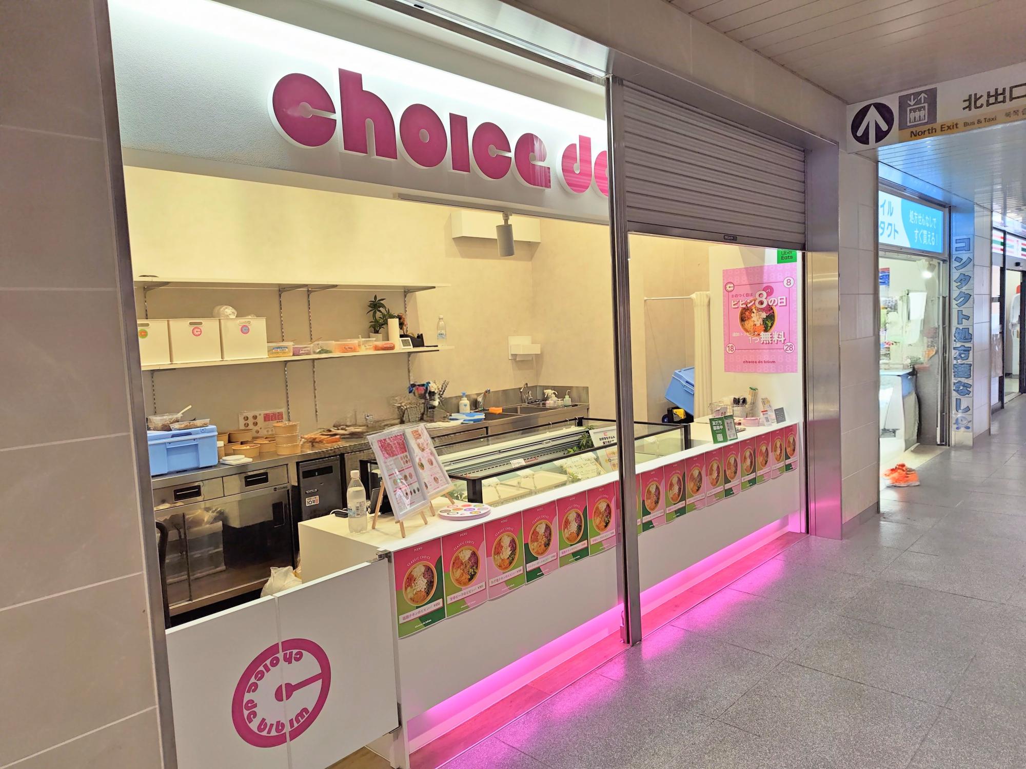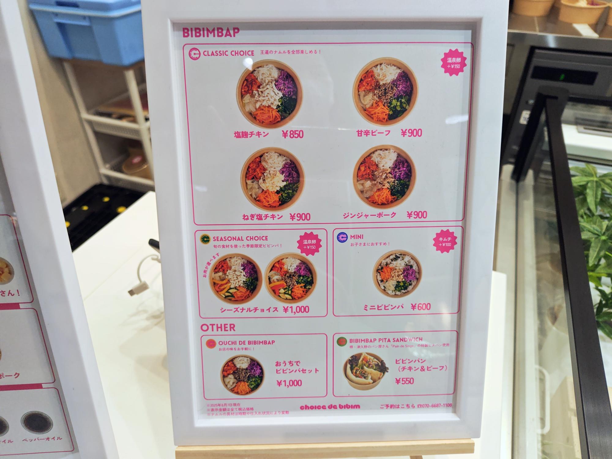 「choice de bibim (チョイスデビビン)」で、2025年3月31日にオープンしたそうです。とてもかわいらしい色合いの店舗です。開店準備中に撮影させていただいたので(2025年9月下旬撮影)、シャッターが開ききっていない画像になっていますがご容赦ください。