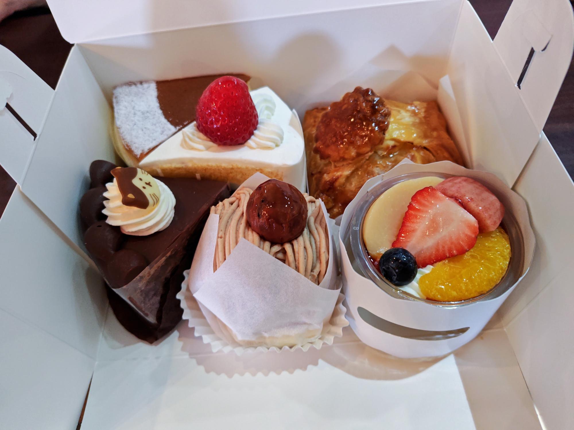 こちらが「シェフのおまかせショートケーキセット」です。日替わりなので、ケーキの内容は日によって変わります。色々なケーキがあって、見るのも、みんなでどれにするか選ぶのも楽しいですよね。ちなみにアップルパイは土曜日限定だそうです。