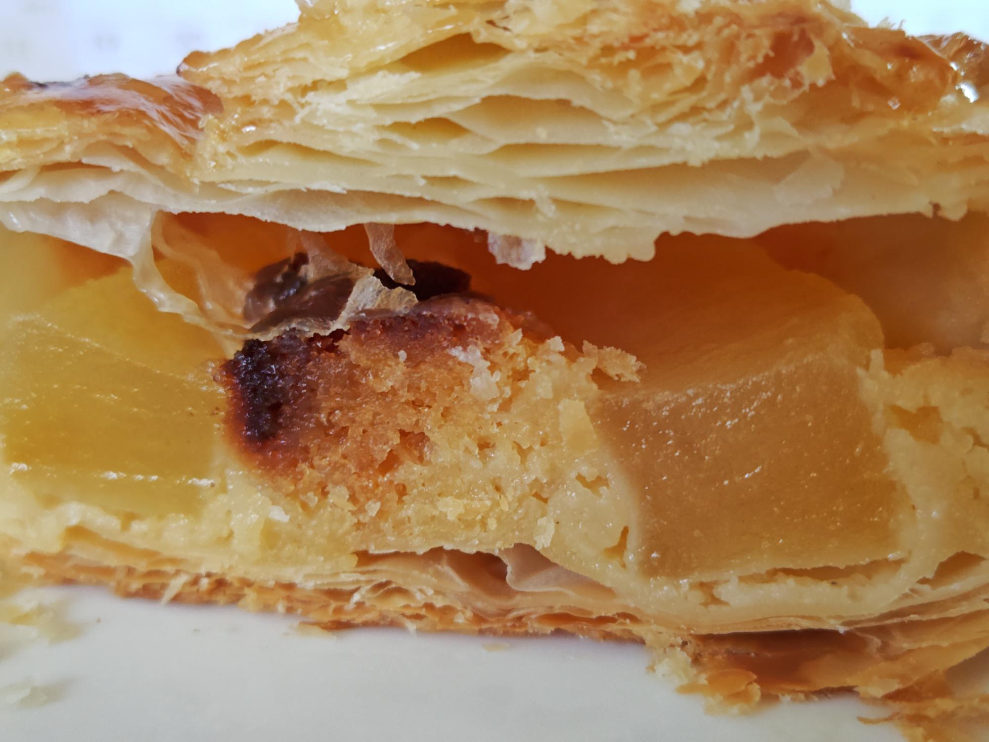 こちらは土曜日限定アップルパイです。サックサクの香ばしいパイ皮に、絶妙な甘さのアップルがたっぷり包まれています。バターの風味がとても強くておいしく、大きめのサイズなのですが、ペロリと平らげてしまいました。