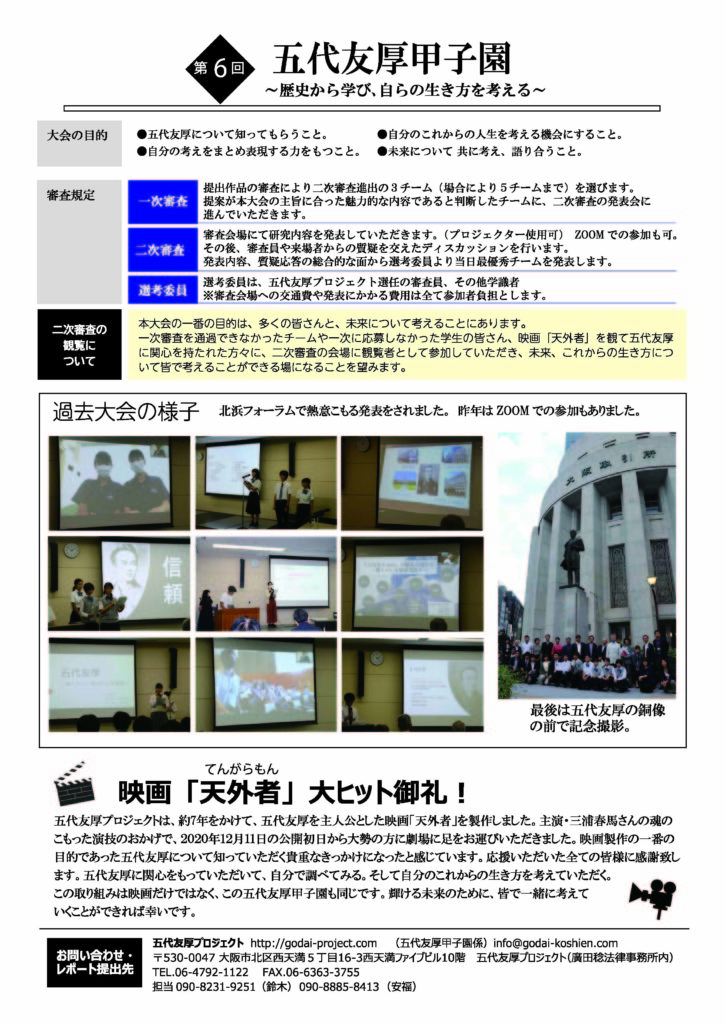 下記の五代友厚プロジェクト宛に