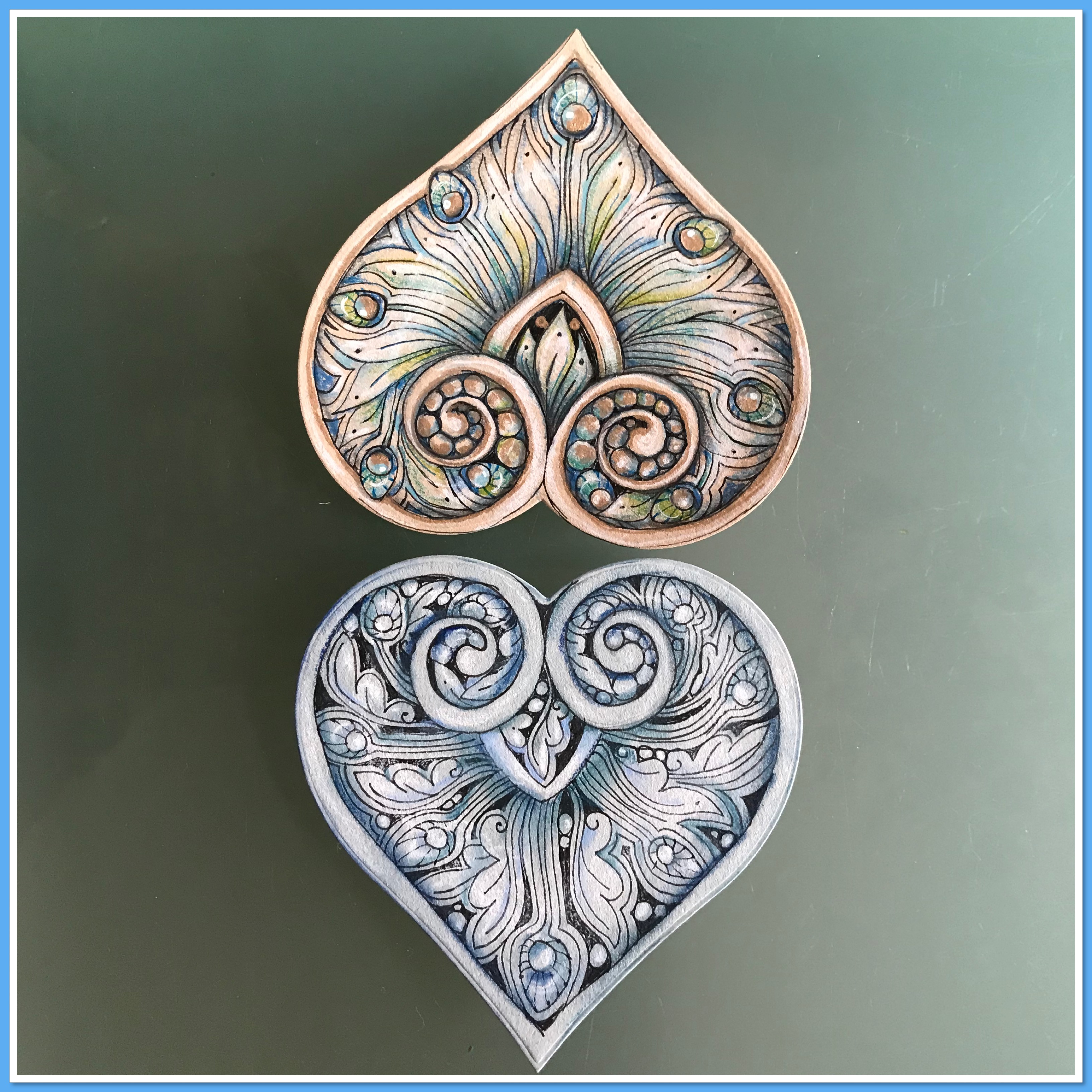 こちらはday1(2/1)の”Love Ribbon”(ハートのリボン)です🎀 タンの3zタイルにピグマのし黒とブルーと茶で描き少し水彩色鉛筆とホワイトチョーク、鉛筆を使ってカラーリングしてみました…