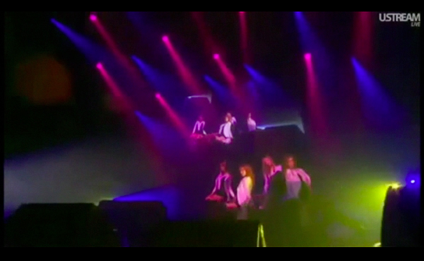 そしてギターを置いたイヨンちゃんが青いライトの中階段を降りてくる。