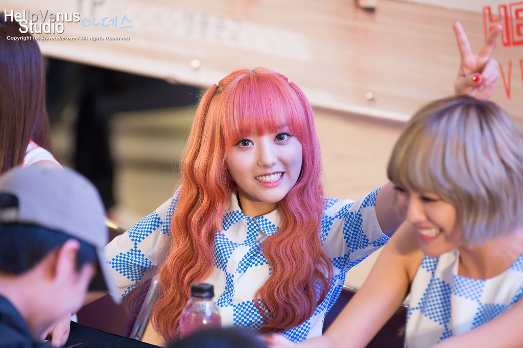 HELLO VENUS デビュー1周年記念サイン会@20130510 汝矣島⑤ ユンジョいつもご訪問ありがとうございます。昨日も帰ったの遅かったから、今日くらいは早く帰ろうかな…。まぁ、昨日はビアガーデンに行っていたんですけどね…。でも、あれも仕事ですから…。会社に帰って、1本仕事終わらせてから、帰宅しましたから…。明日まで行けば、休みだわ…。来週凌げば給料日だわ!さて、ヘロヴィさん画像続き…。意外と登場回数が少ないユンジョです。やっぱりユンジョは口が小さい。(C)HELLO VENUS STUDIO. Photo by 아데스
