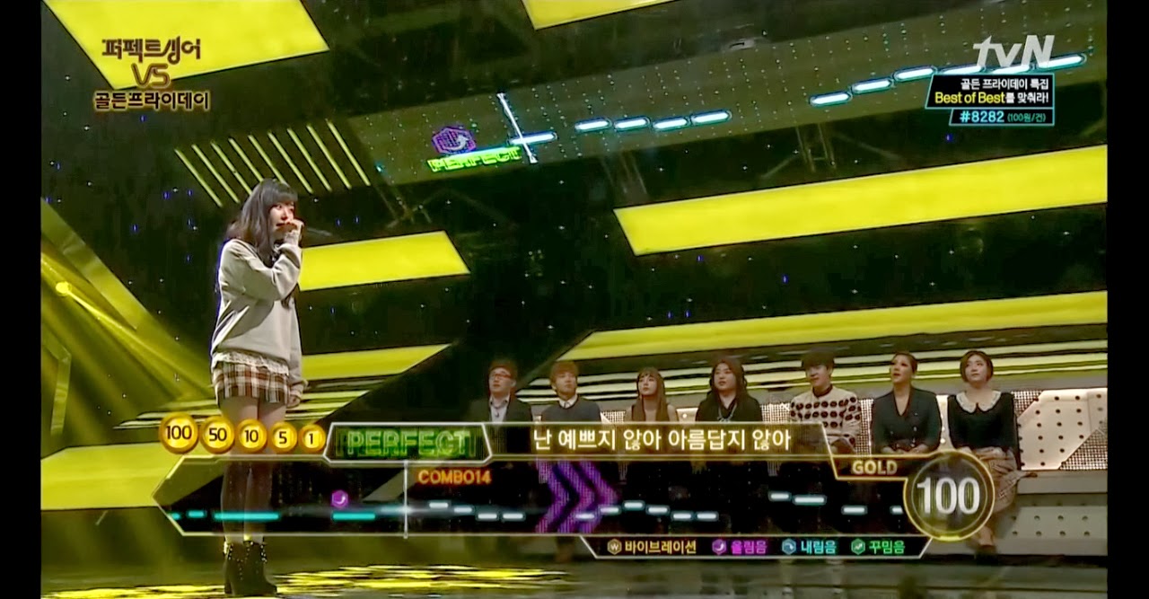 レイナさん@パーフェクトシンガーVS@20140221昨日「パーフェクトシンガーVS」に出演したレイナさん。今回も2NE1の「UGLY」に挑戦。YouTubeはまだアップされてないようなので視聴はこちらから→★★★ 仕上がり抜群!カワイかぁ~ (人´3`)~♥ 「UGLY」 Aメロのキーが低いんだよね、レイナさんが歌うには…レイナさん、低音なかなか出にくくて、ちょっと音外す時があるから…でも前回を上回れるように努力・練習してチャレンジしたようです!!! レイナさんの歌声は、そのものそれだけで私の心を打ち、十分に響いています!世界最高の歌い手です!!!