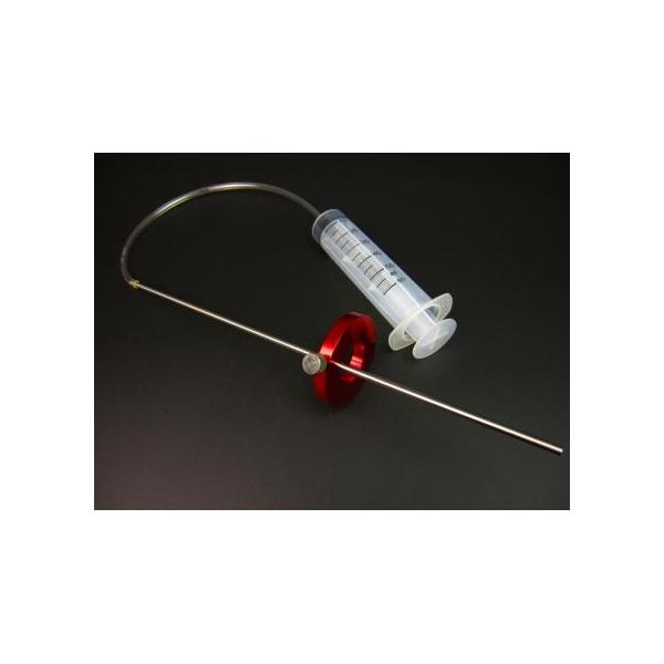 フォークを垂直にし、ゲージを挿入、注射器で吸い上げると余分なオイルだけが抜きとれます。