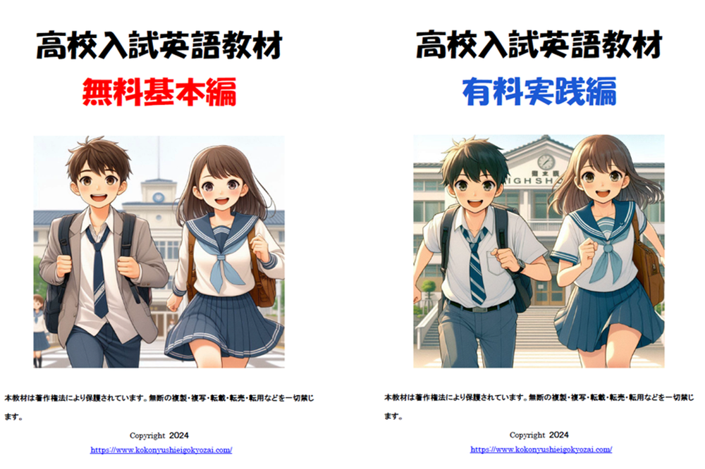 「高校入試英語教材」の「無料基本編」はこれまで通り、閲覧期間による制限もなく常に無料でだれでも自由にダウンロードして学習できます。それに対して「有料実践編」は、これまですべて有料でしたが、今回、1か月間の無料プランを設置しました。