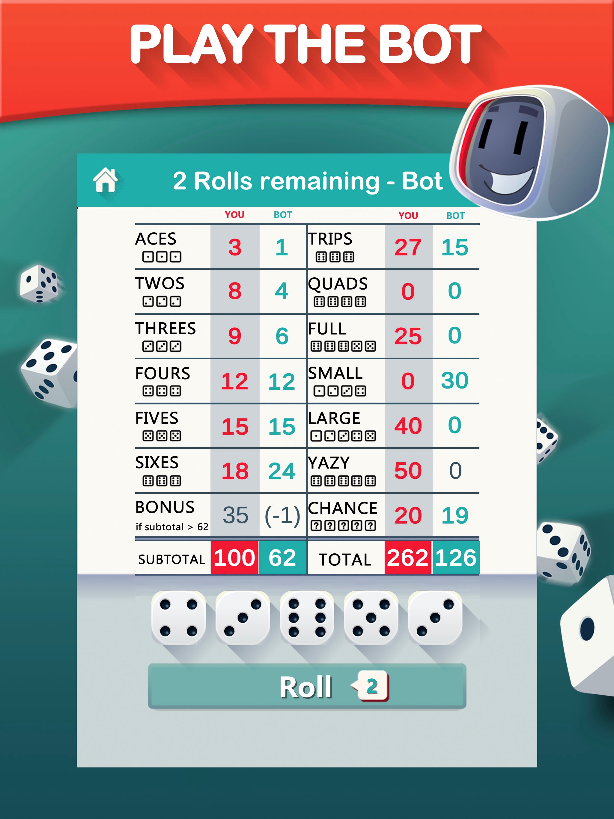 Info Bli med millioner av fanatiske Yatzy-spillere. Få det beste terningspillet noensinne: Yazy! Det er![]()