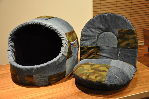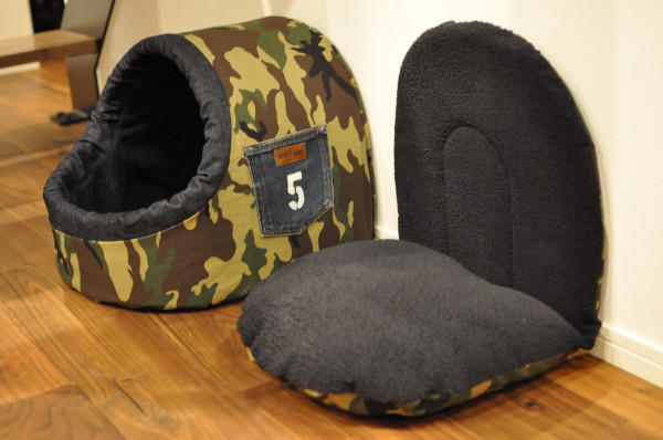 中のクッションはリバーシブルで冬はフリース地であったかく使えますが、これからの時期はデニム地で涼しいほうが良いですね☆