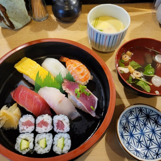 I'm Yosaku who lives in Osu, Nagoya. I went to Kiyasu Sushi in Harutano, Minato-ku, Nagoya City. This is a popular sushi restaurant in a residential area. In addition to the sushi menu, the restaurant offers a wide variety of a la carte dishes such as fish dishes and fried foods, just like a popular bar. For lunch, nigirizushi and chirashizushi with steamed egg custard and soup are available for a shockingly low price of 880 yen.