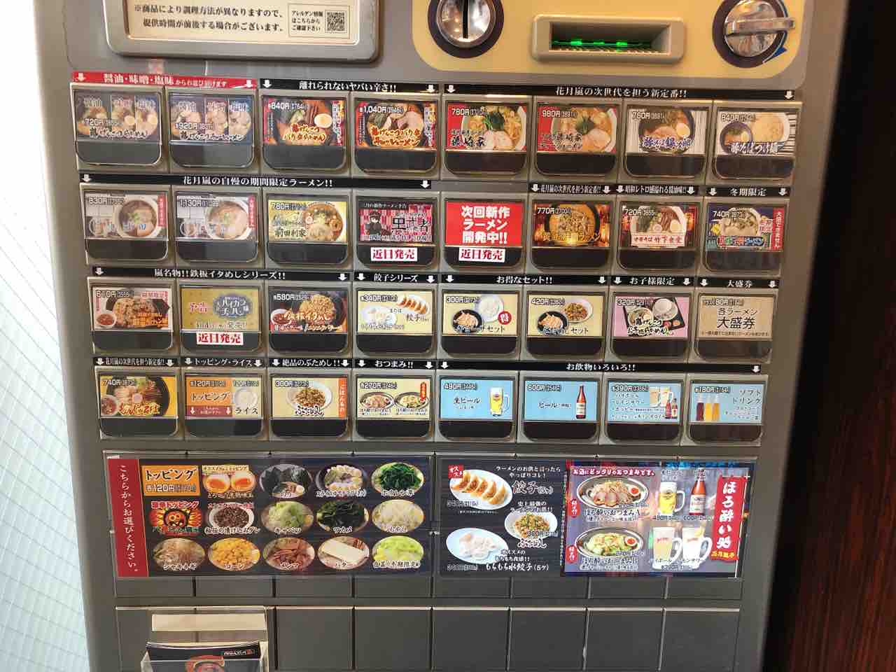 券売機のメニュー。