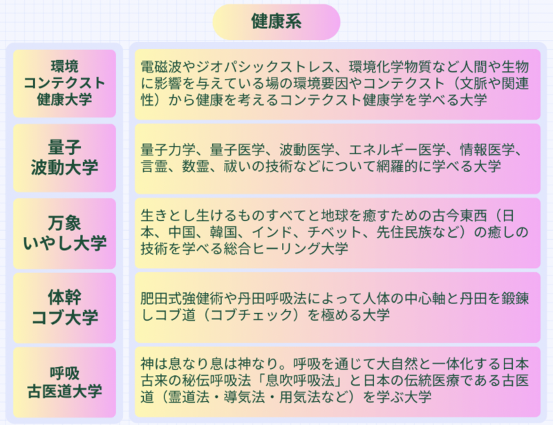 「万象蘇生系」「健康系」「自己探求系」の3つです。