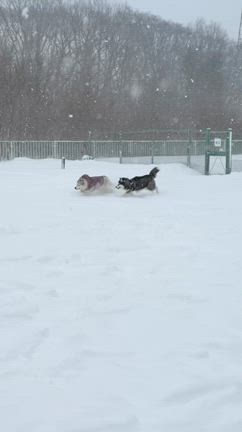 雪かきはよろしく!あいた時間に遊ばれるハスキー(=´∀`)