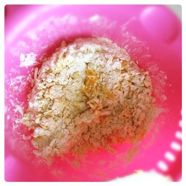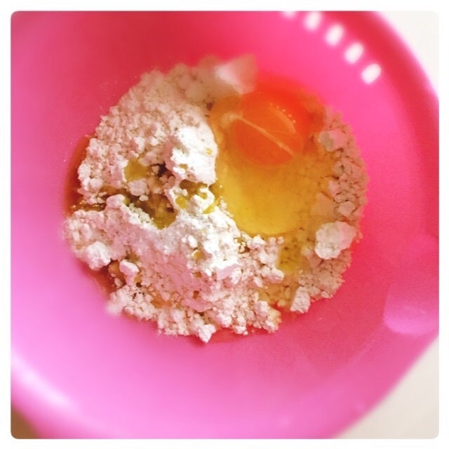生パスタの材料を全ていれて、ゴムベラで軽く混ぜる。