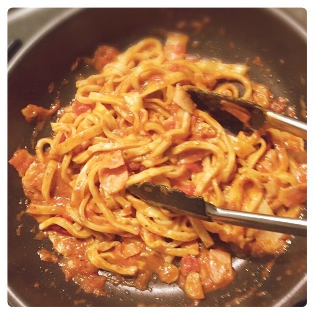 ⑧のフライパンで、麺とソースを合わせて完成です♡