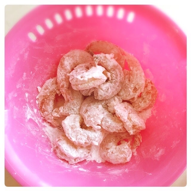 全体に行き渡るように片栗粉をまぶして置いておきます。