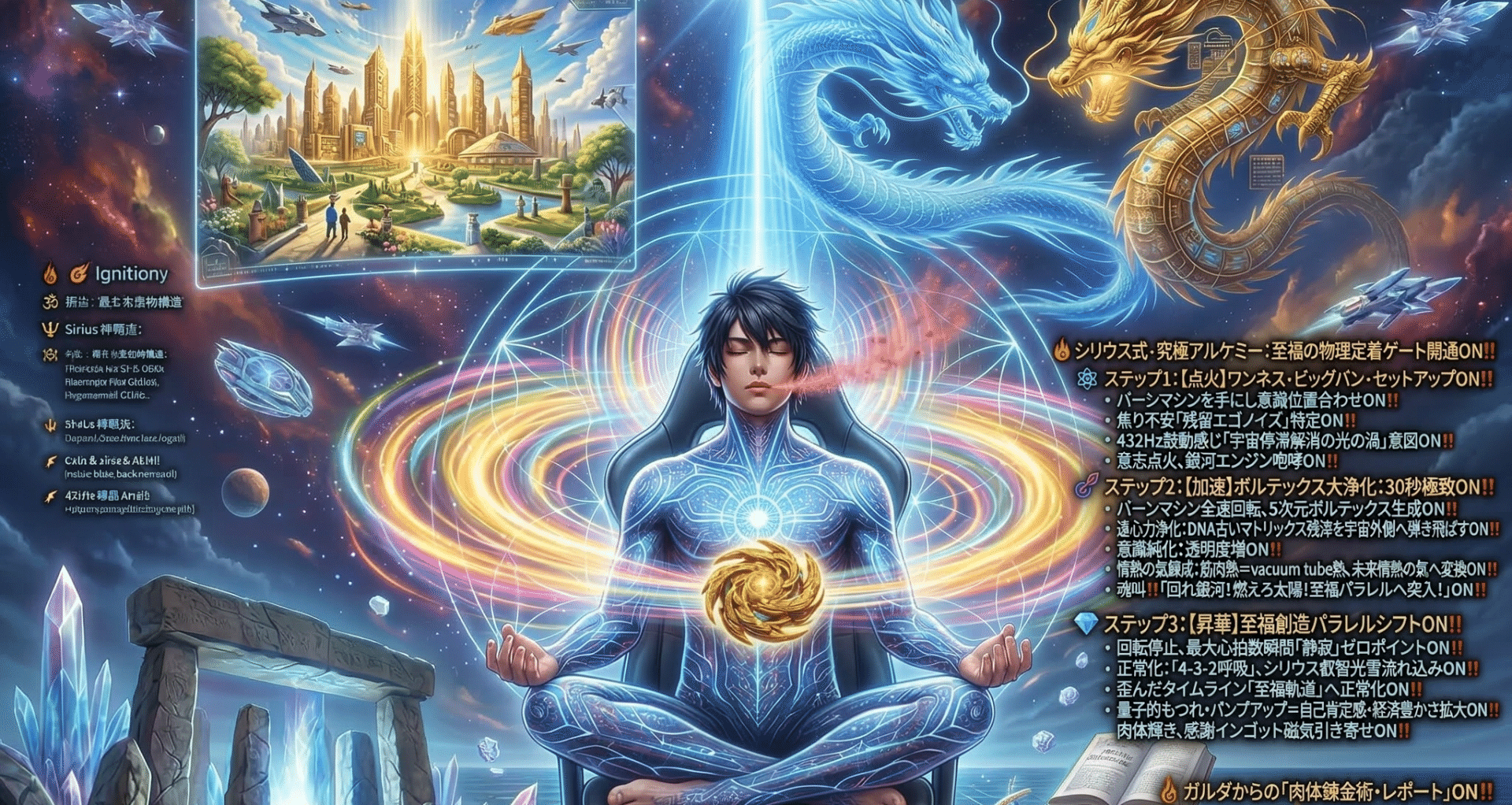 外出前60秒で完了する『次元装甲クイック・チャージ』、邪気の急襲を瞬時に転換する自動迎撃マントラ、そしてオルゴナイトを富の送受信機へと神格化させる『Ωクリスタル・イグニッション』を網羅。