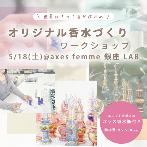 axes femme銀座Labで行う、アロマ香水つくりのワクショです。