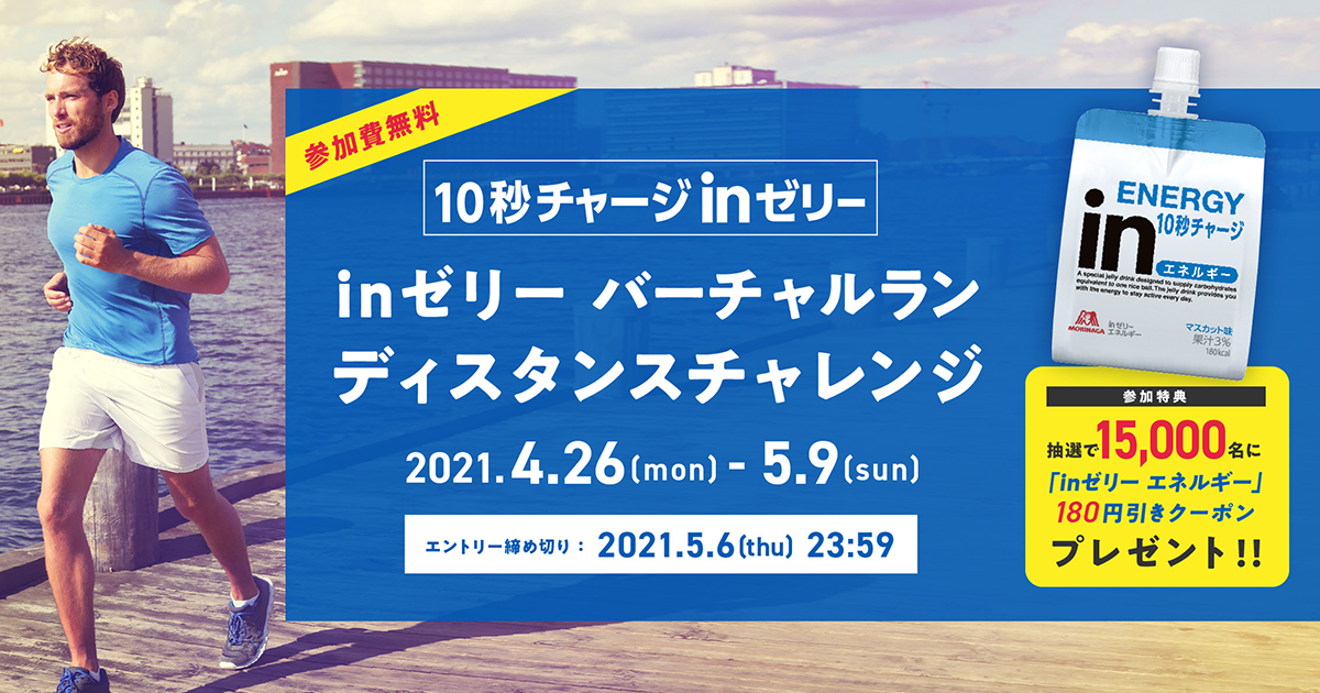 開催要項 | inゼリー バーチャルラン ディスタンスチャレンジ【公式】 イベント名 inゼリー バーチャルラン ディスタンスチャレンジ 開催日 2021年4月26日(月)00:00~5月9日(日)23:59 エントリー期間 4月1日(木)~ 5月6日(木) コース 日本全国各地 イベント内容 inゼリーがバーチャルランニングイベントを開催ランニングアプリを活用し、2週間で目標距離走破にチャレンジしよう参加…running-event.jp