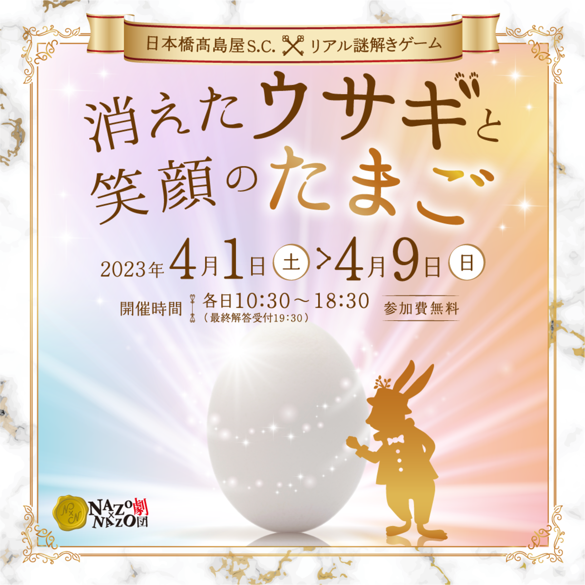 リアル謎解きゲーム「消えたウサギと笑顔のたまご」開催 | トピックス一覧 | 日本橋高島屋 S.C. 新館 専門店日本橋高島屋 S.C. のイベントやフェア情報をご案内します。www.takashimaya.co.jp