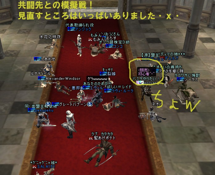 交換部屋ではいつもどおり交換台の周りが乱戦で、うちの1PT目が登りはじめて戦っていた。盟主はすでに死んでてやられてたけどw、それでも仇といわんばかりに応戦ww