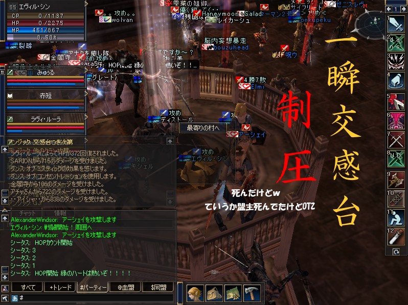 直後に出てきた他クランの盟主をたたき始めて総攻撃にあって死んだとき、SSをハッと撮った俺wwだからSSは死んでます('A`)