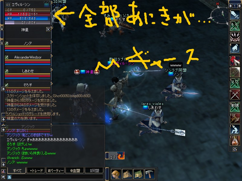 さっきまで、皆と低レベル支援PTやってましたw