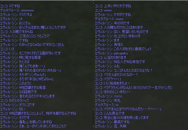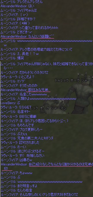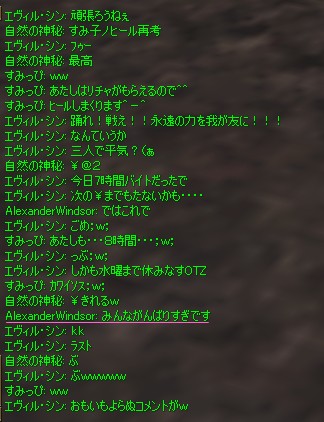 4.連盟にいる震雷さんが通称シンさんで俺と同じ。んでWIZPTでのアシを決めるとき、アレクさんが「アシはシンさんです」といって皆が「どっちの?」と言ったあとの一言。カワユスコト・・・