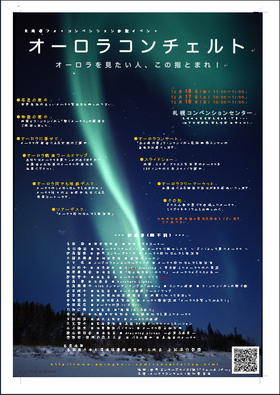懇親会では友人、土井さんの紹介で丸山さんと名刺交換。丸山さんが「一生に一度はオーロラ見てみたいんですよねー。」「うちは今までに8回実施して奇跡的に8回ともオーロラが見えているんですよ。」「おぉ~素晴らしい。いい人と知り合えた。いつか行ってみたいですねー」