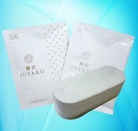 大源製薬の足湯専用の入浴剤「贅沢JUYAKU」は、620ppmという一般の炭酸ガス入浴剤の6倍以上の高濃度な炭酸ガスで入るアイテムです。