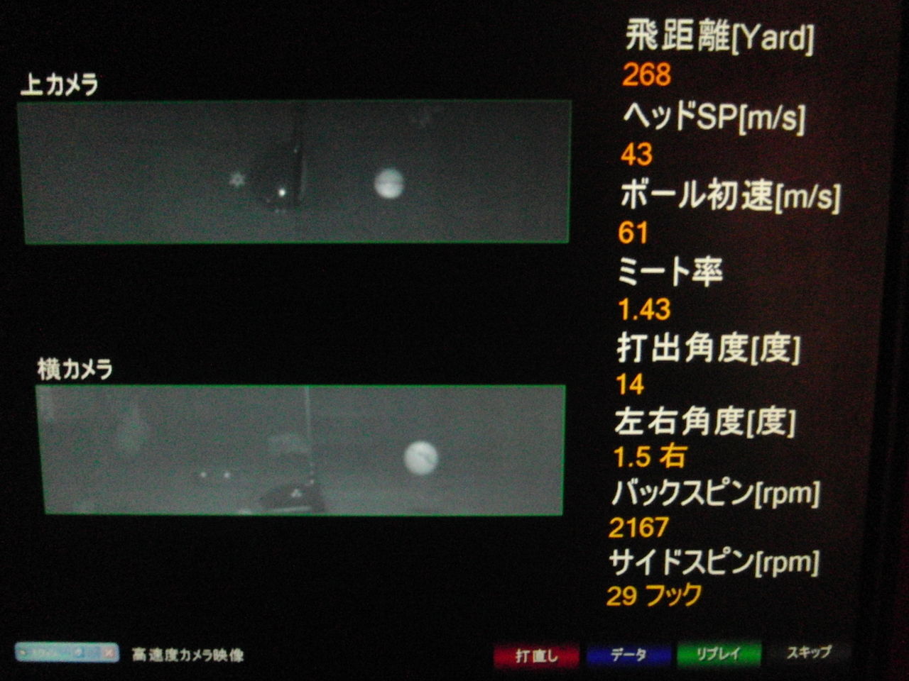 やっぱり球は上がってますが、スピン量は多くないです。