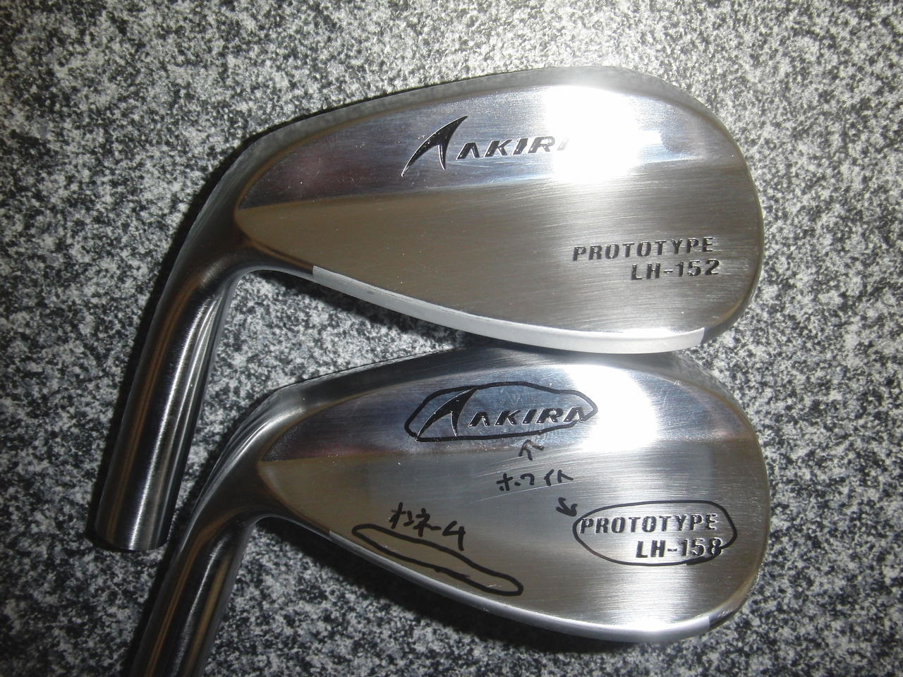 ☆ウエッジ加工☆ニャンス最近コタツで丸くなりモンハンの毎日のNEKOですこんな感じニャンはて昨日ウエッジの加工の注文が入りました商品はアキラH158LH152LH久しぶりのレフティニャン修理内容はメッキを剥離してのガンブルー加工プラスオンネームもともとレフティー用はメッキオンリーなので黒く染めたいとご要望NEKO頑張るニャンス加工の際に気をつけるのはヘッド重量現在AW299gSW300.5gメッキを剥がすと1-2g落ちるはずそうなるとバランスが1-1.5ポイント落ちてしまいますのでシャフトを戻す時にバランス調整が必要ですな慎重に組んでいきますこの加工メッキ剥がしは当店では出来ないのでメーカーに出しますので2-3週間時間がかかりますこだわりのクラブを求めてご来店いただきましたのでNEKO魂を込めて製作いたします出来上がり次第ブログにUPいたしますマルメーーーーーーーーーーーーーン
