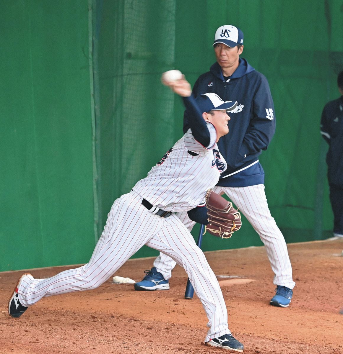 (2月8日 イージースポーツ)奥川投手が3度目のブルペン入り 高津監督が見守る