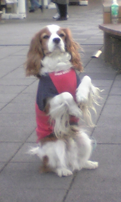 座る犬!