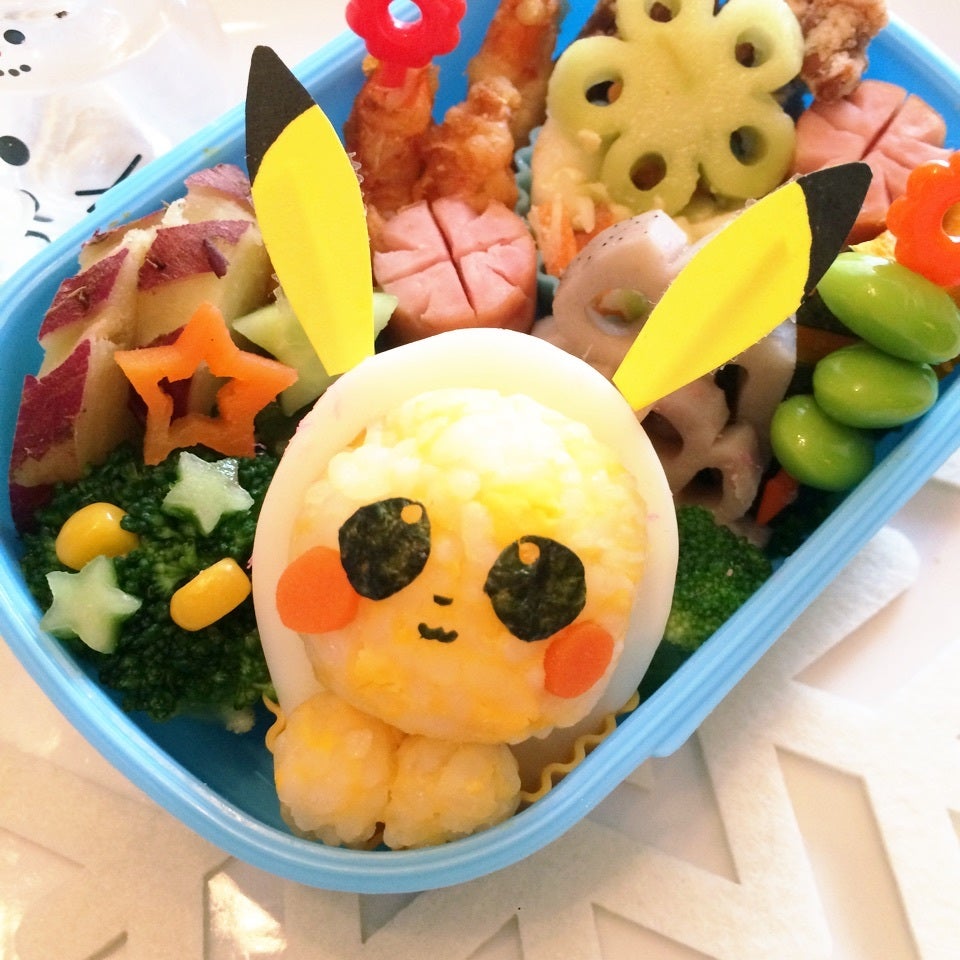 黄身を抜いた所にピカチュウのお顔をはめてみました❄︎❄︎