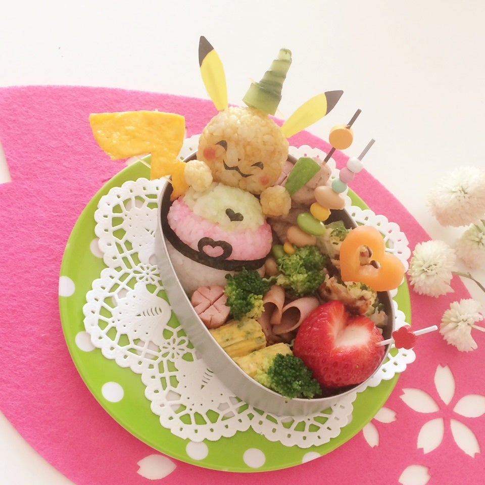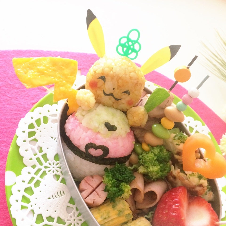 今日のお弁当は3色団子風モンスターボールを持った、