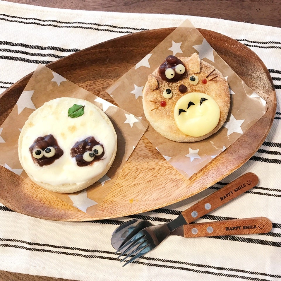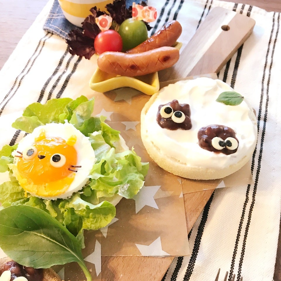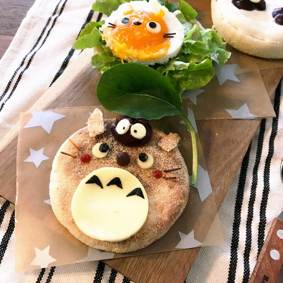 ムスメと一緒に食べるようにトトロなオープンサンド作りました♫