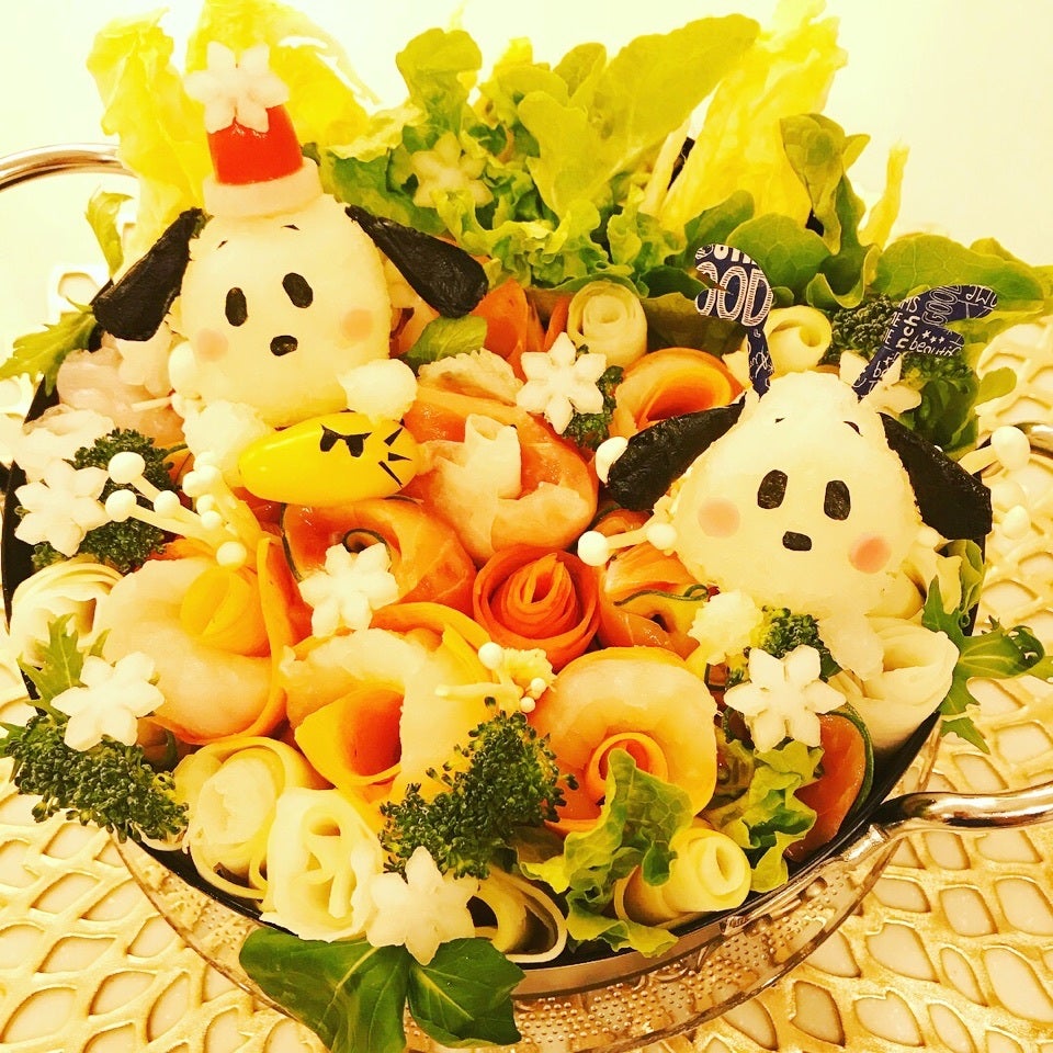 ❄️海鮮お花畑鍋♡withすぬサンタ♫おはようございます☀昨日の夜ごはんは♡お気に入りのお花畑鍋を海鮮鍋verで♫タラとサーモンをお野菜と巻いて花束に💐♡お花畑鍋♫作るの楽しくて美味しいので我が家のお気に入り鍋です♡🐾🐾 材料◯スヌーピー🐾・大根おろし・海苔 詳しい作り方 01鍋材料🐾⚪︎お鍋用真鱈⚪︎鮭⚪︎ズッキーニ⚪︎人参⚪︎大根 ふぁくとりーさんのお料理をもっと見る