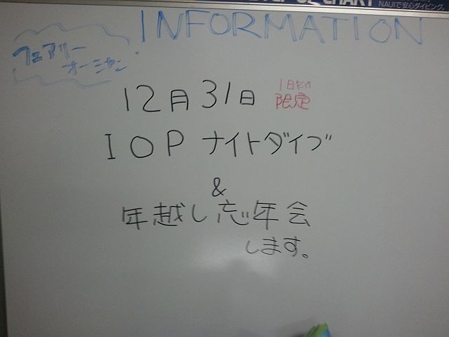 12月31日 IOPナイトダイブ&年越し忘年会を開催します~