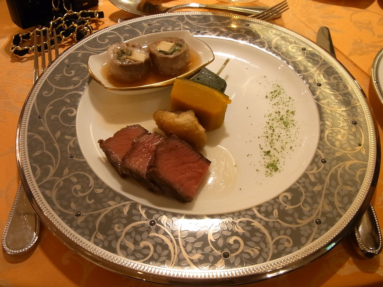 【国産牛フィレ肉の網焼きと牛肉のロール仕立て 2種類の味わい 野菜のプロシェットと共に】
