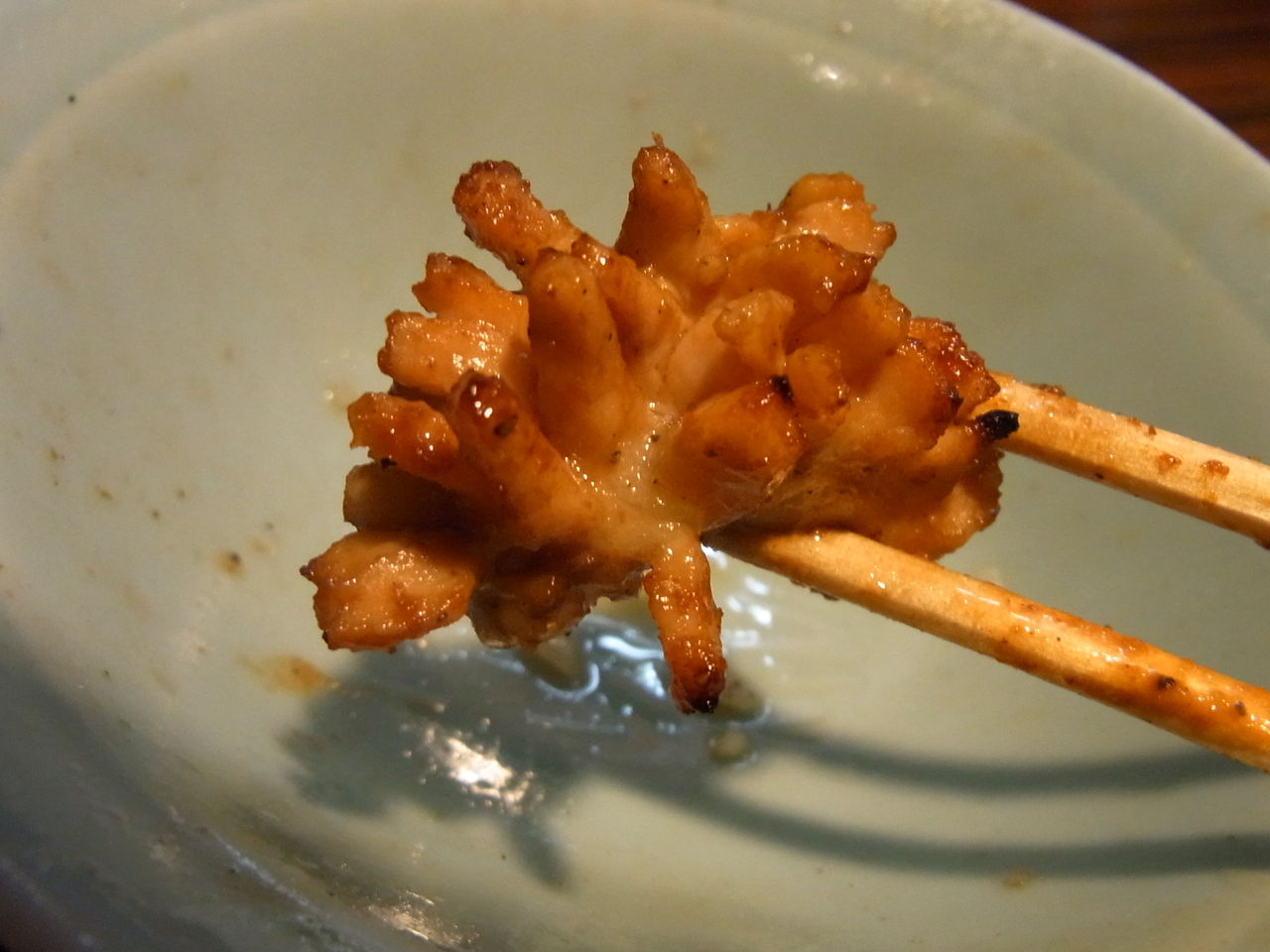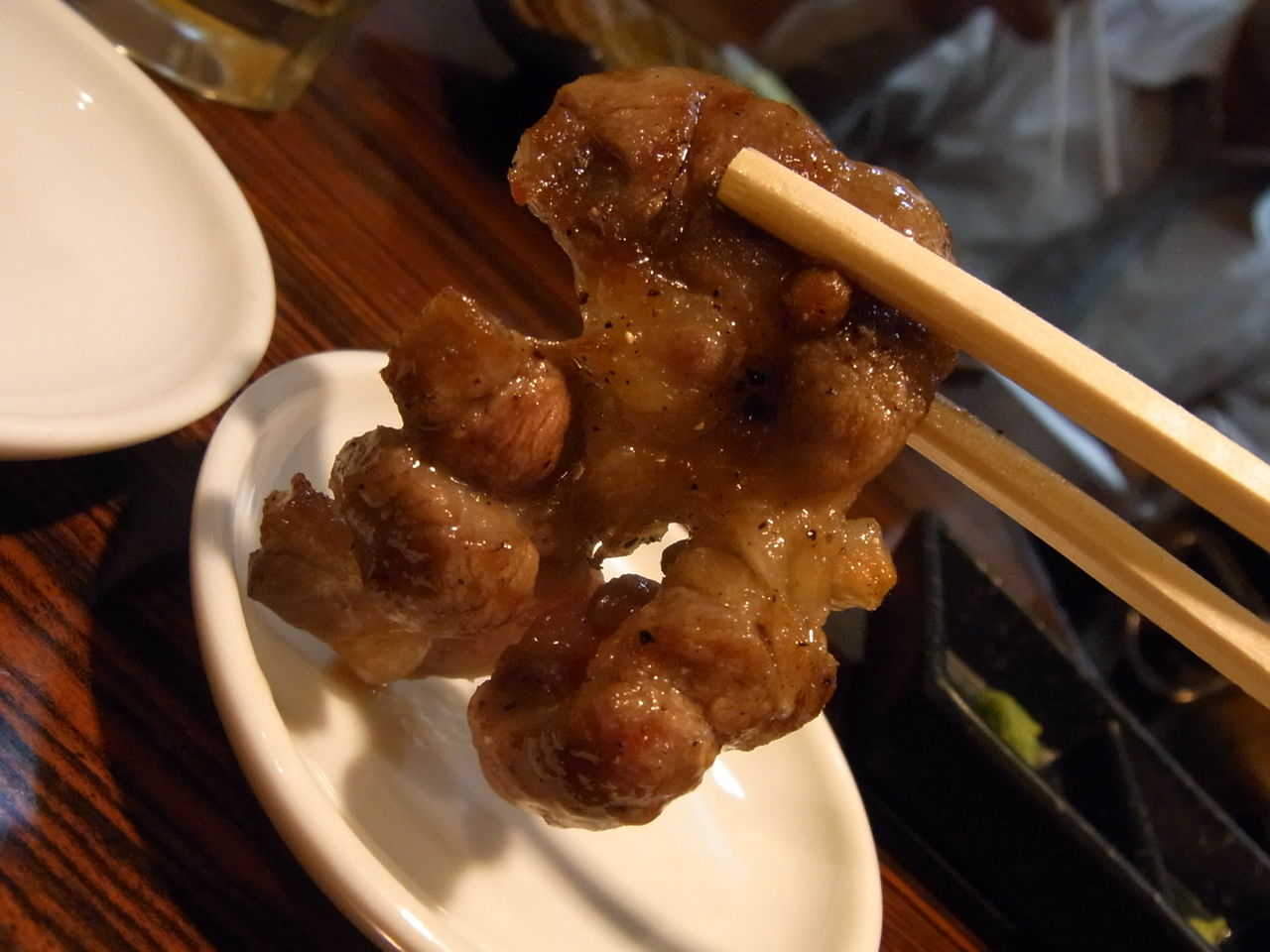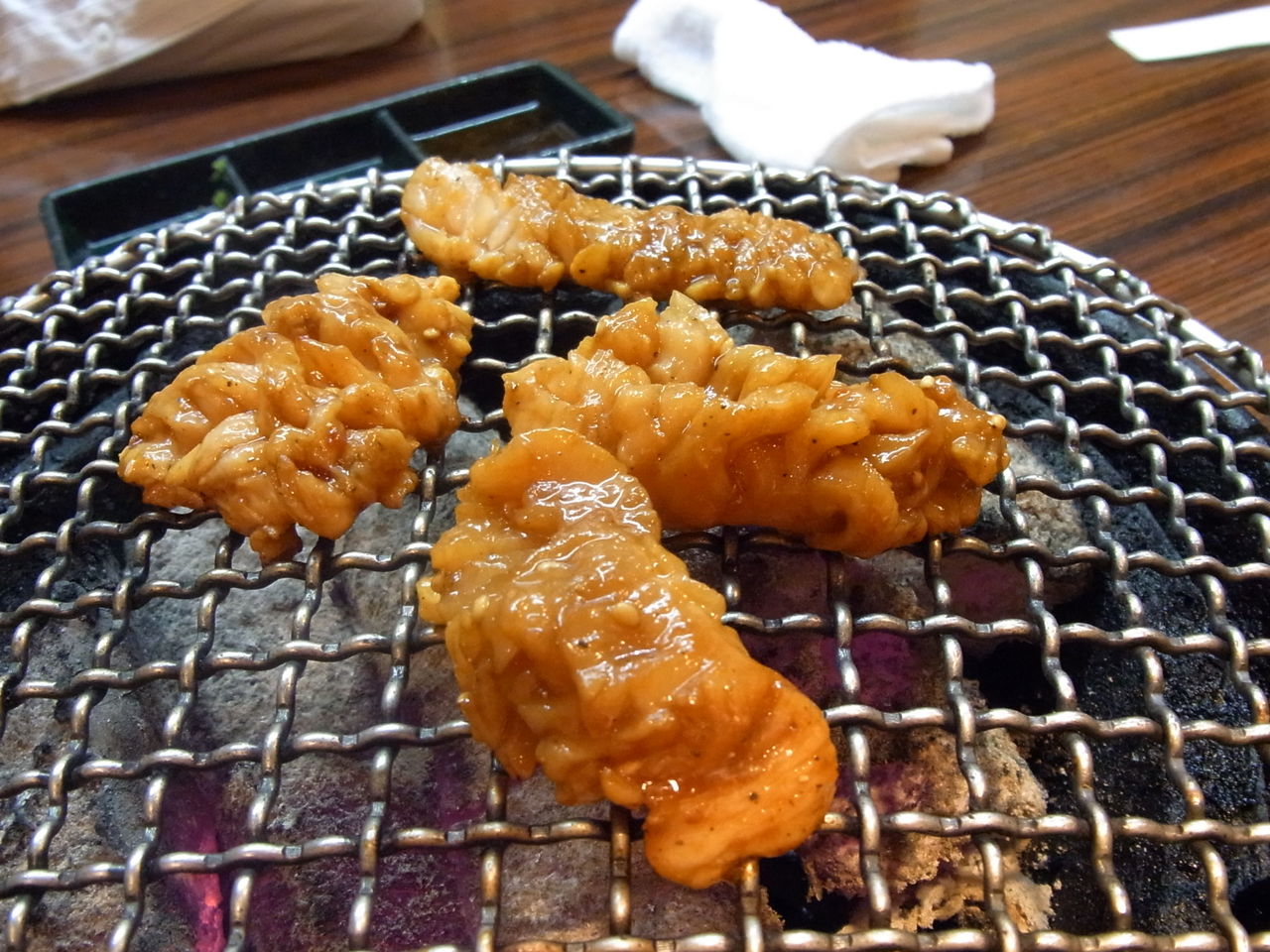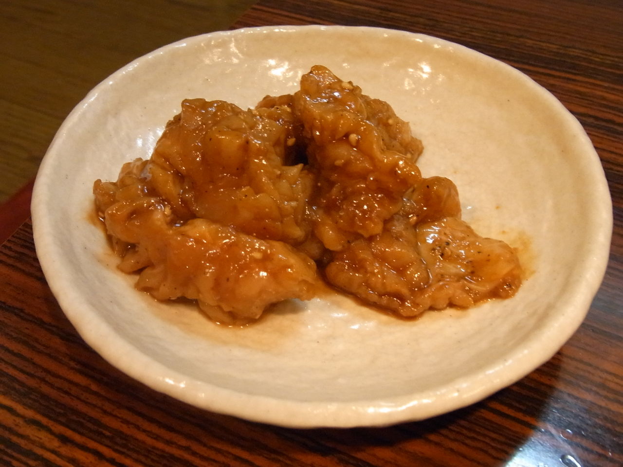(タレに漬けられたミノは、けっこう濃い味付けなので、悔しながら白米と合わせたいところ)