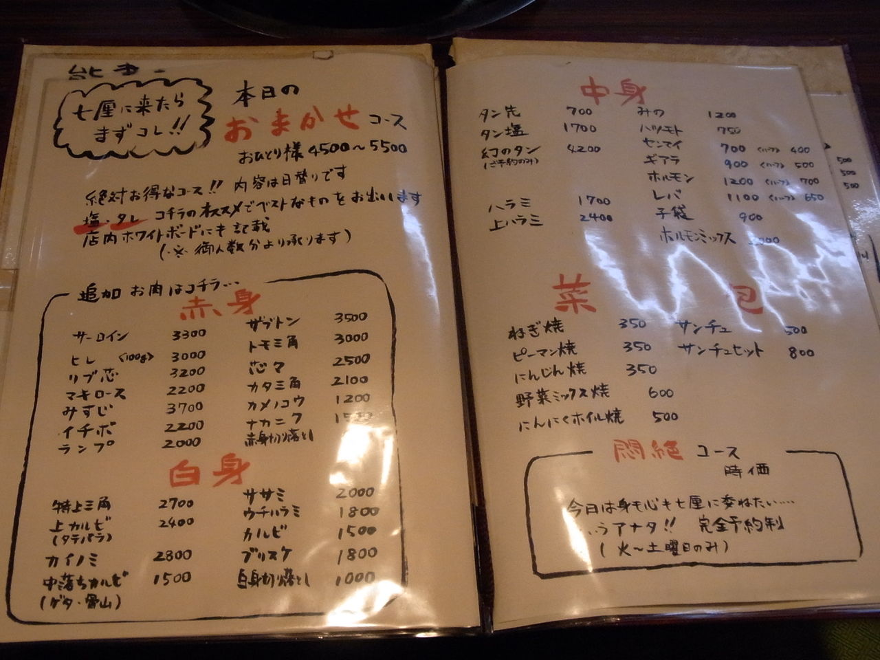 肉1品2000~3000円しますが、おまかせコースだと、稀少部位7品+αで、約5250円!